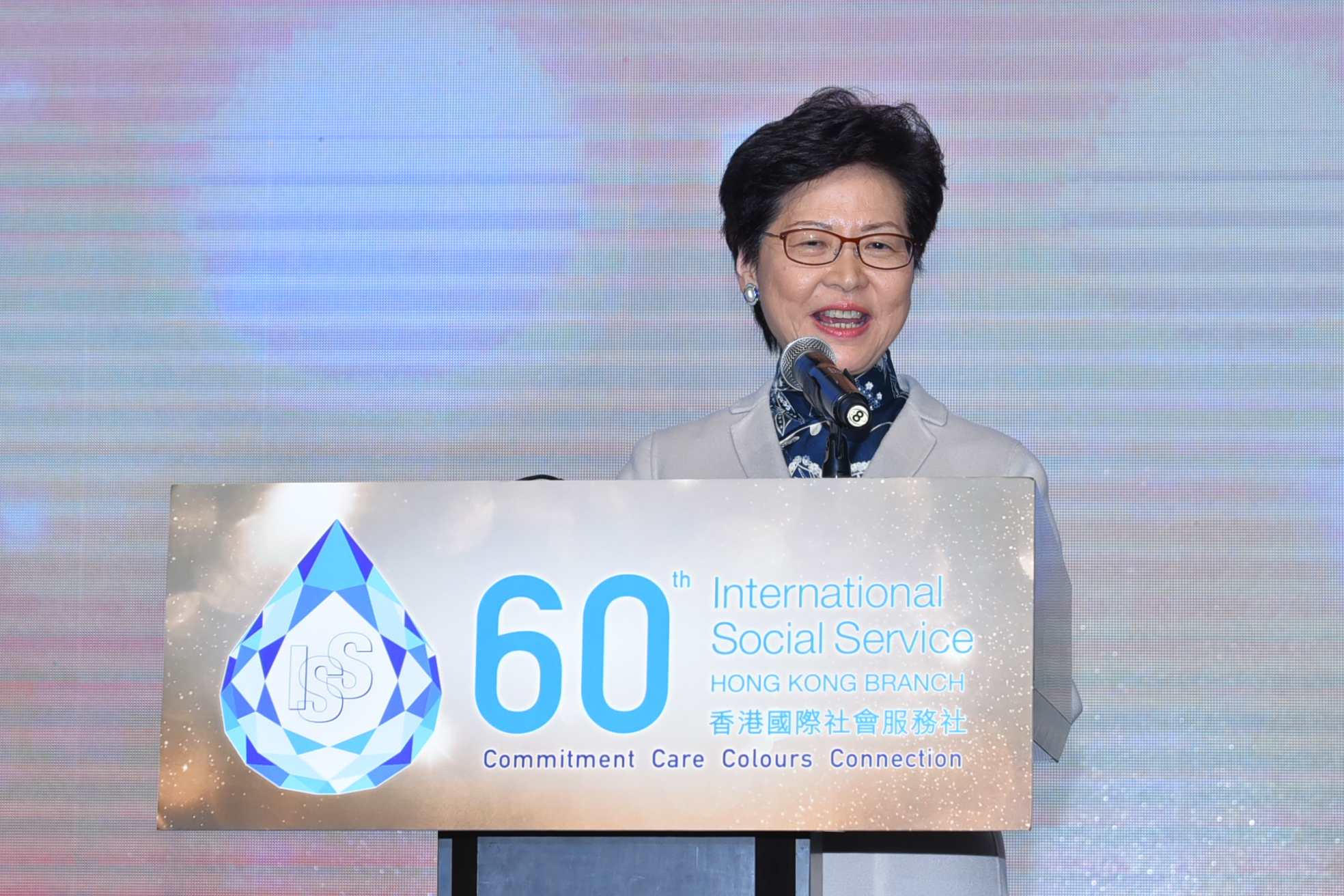 Mrs Carrie Lam, the Chief Executive of the Hong Kong SAR Government and guest of honour of the event, highly applauded the work of ISS-HK over the last six decades in her speech that evening. “Whenever the Government has a problem and approaches ISS Hong Kong, ‘Can you do this for us?’, they never say no.” Mrs Lam further commented that the work of ISS involves a lot of faith and trust in the government. “For example, cross border work, we want to serve ethnic minorities even before they arrive. We want to serve new arrivals from the Mainland before they arrive… And all these services are now delivered by ISS Hong Kong because no other agency could earn the trust of the Chinese Government to do this…So tonight is the wonderful evening for everyone of us not only to just enjoy the food or the hospitality of ISS Hong Kong, but to express a deep gratitude to this wonderful NGO who has been doing great things on behalf of the Government for the people of Hong Kong. Thank you very much.”