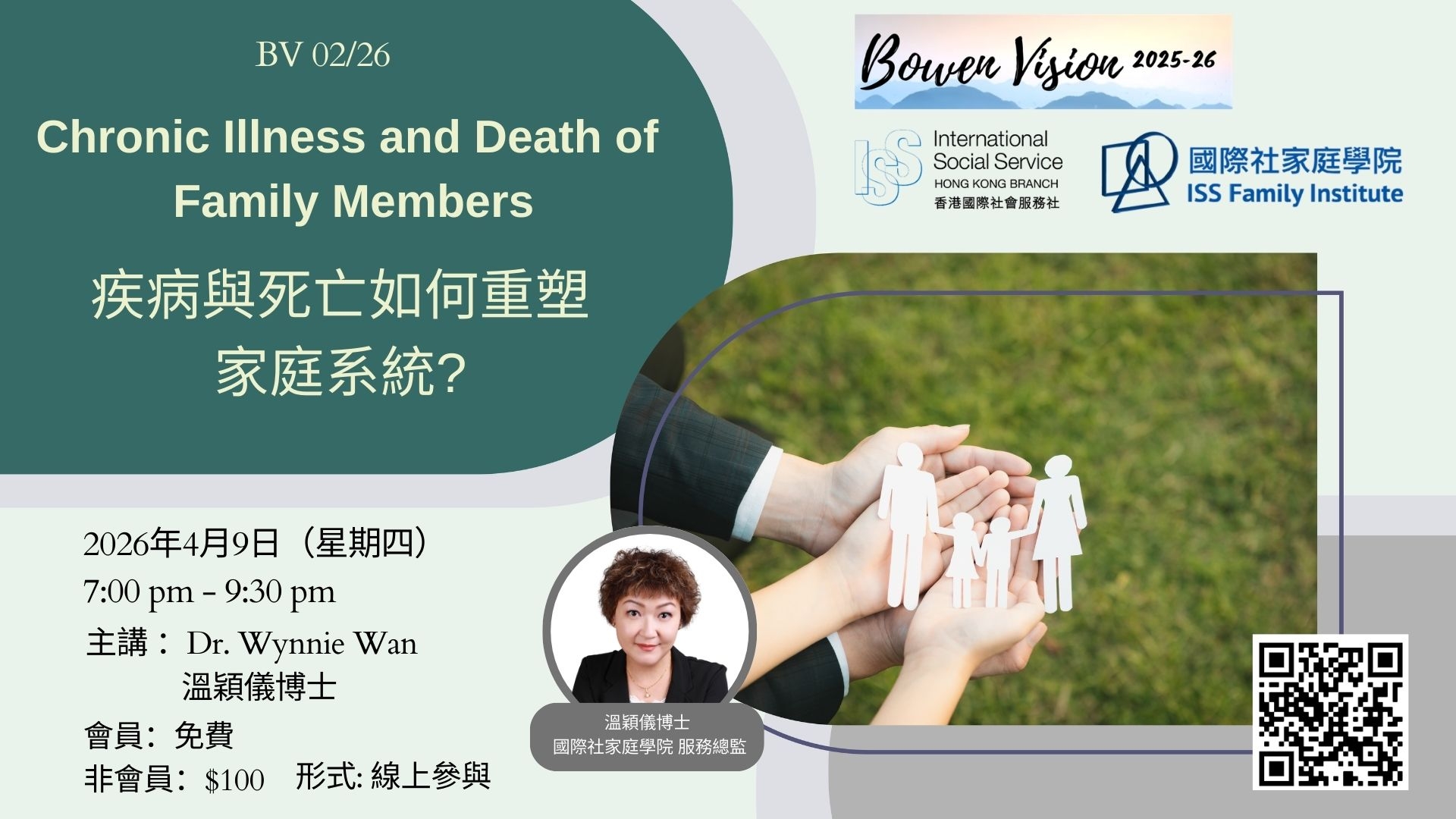 This lecture welcomes family therapists, social workers, counselors, healthcare professionals, and members of the public interested in family dynamics. Whether you are a family member navigating these issues or a practitioner hoping to deepen your understanding of family systems, you are invited to join this in-depth dialogue and sharing on love, loss, and resilience.